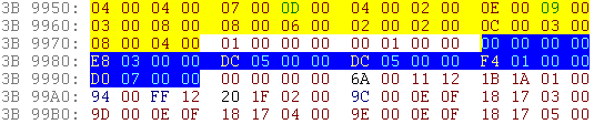 - The block marked in blue contains the mine income. 4 bytes for each mine.