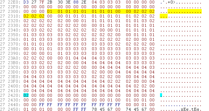 The first 16 bytes hold the information about the sectors A1-A16 (marked in